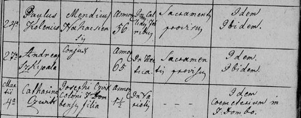V úmrtných matrikách začneme manželov hľadať v období narodenia najmladšieho dieťaťa. Najprv nachádzame Máriu Garažiovú – zomrela v roku 1831 na koliku, údajne ako 66-ročná v Naháči, pričom v zázname je uvedená ako manželka roľníka (uxor coloni) Ondreja Skýpalu (Andreas Szkipala) z Naháča. Vďaka tejto informácii vieme, že Ondrej Skýpala v tom čase ešte žil.