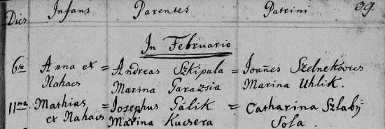 Bádanie v matrikách z druhej polovice 18. storočia si priblížime na mojom predkovi, Ondrejovi Skýpalovi, rímskokatolíckom gazdovi z Naháča.