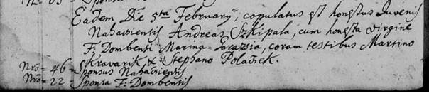 Nakoniec nachádzame manželstvo Ondreja Skýpalu a Márie Garažiovej v roku 1787, 12 rokov pred narodením Anny. O manželoch sa dozvedáme veľmi dôležitú informáciu -miesto pôvodu. Ondrej pochádzal z Naháča, manželka Mária z Horného Dubového. Ďalej zisťujeme informácie o svedkoch – boli to Martin Kravárik a Štefan Poláček. Okrem týchto informácií však zo sobášnej matriky nezistíme nič.